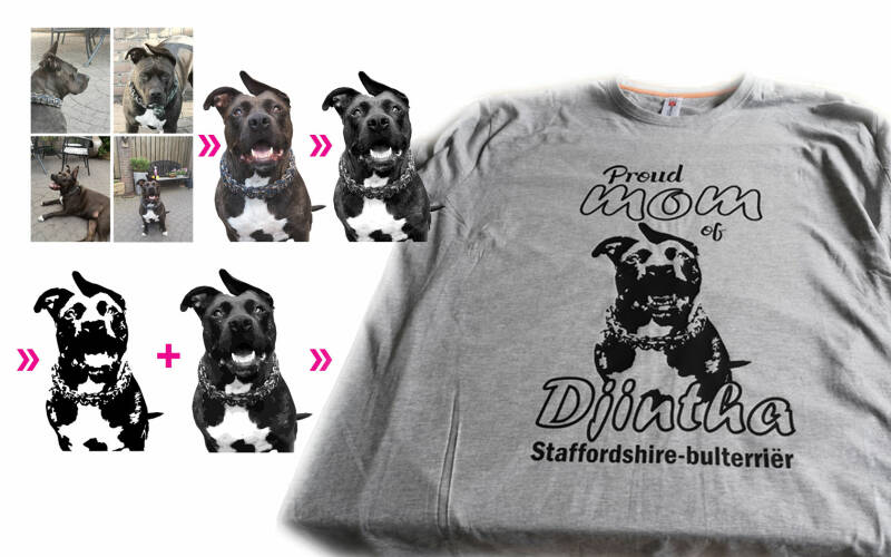 - We werden benaderd door een trotse eigenaar van een Bulterriër en of het mogelijk was deze hond op een grijs shirt te maken.